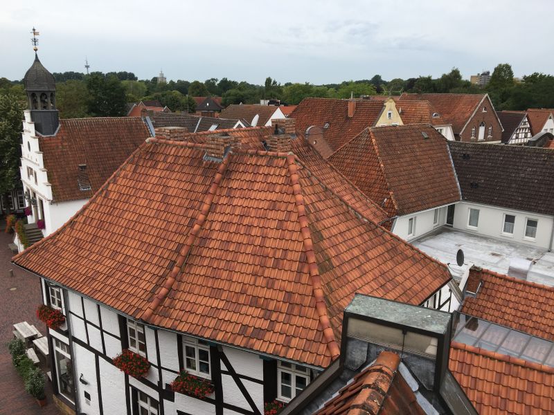 Unser Schwerpunkt sind erhaltende und modernisierende Arbeiten an Dach und Fassade von historischer Bausubstanz. Als Zimmerer restaurieren wir außerdem historische Treppen, Fachwerke und Dachstühle. Neben „alten“ Materialien wie Schiefer oder Hohlziegel und traditionellen Handwerkstechniken wie das Bleilöten setzen wir auch auf innovative Materialien, die neuesten energetischen Standards entsprechen – sich aber harmonisch ins historische Gesamtbild einfügen.